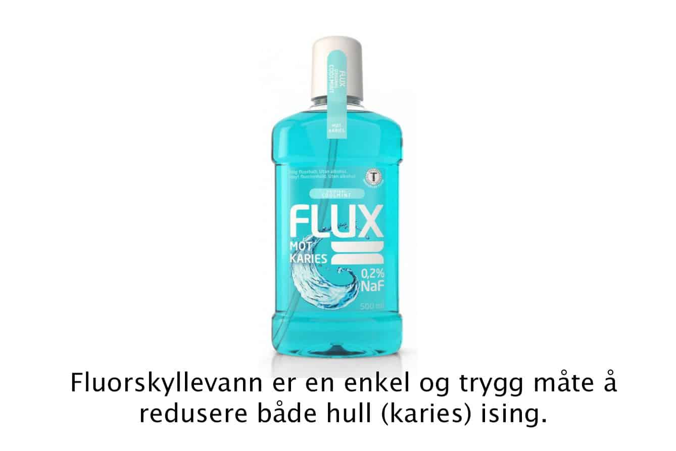 - Fluortilskudd i profylakseskinne for å styrke tennene over tid.